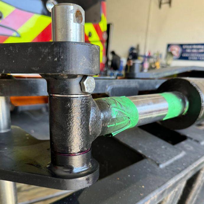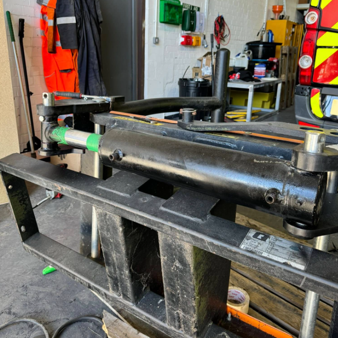 The attachment pins were modified and machined to suit the upgraded ram, guaranteeing smooth operation and alignment.